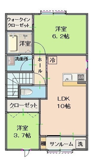 | 間取り・専有面積 | 2LDK 56.93㎡ 洋室:3.7帖、6.2帖/LDK:10帖 |